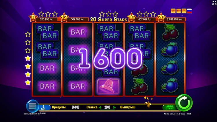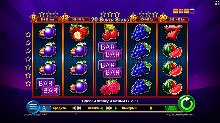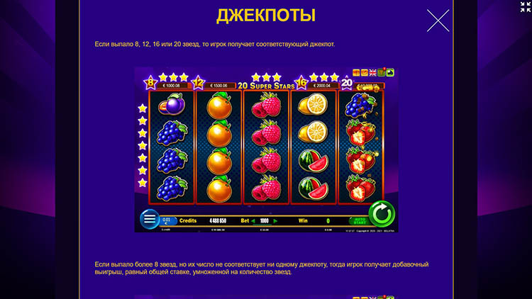 Таблица выплат 20 Super Stars