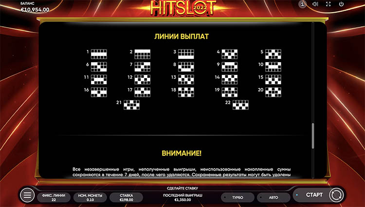 Таблица выплат 2022 Hit Slot