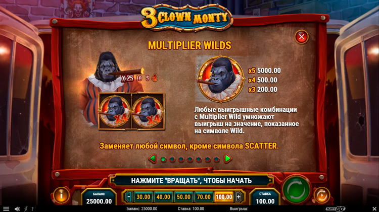 | Клоун с красными волосами, Горилла (Wild) | 200 | 500 | 5 000 |