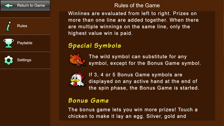 Таблица выплат 4 Fowl Play