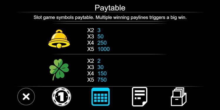 | Символ Бар | 5 | 10 | 50 | 2 500 |