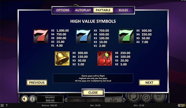 Таблица выплат 7th Heaven