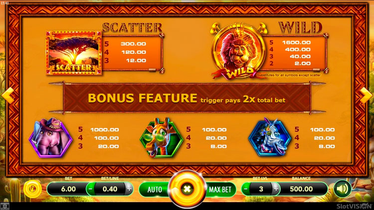 Таблица выплат African Safari