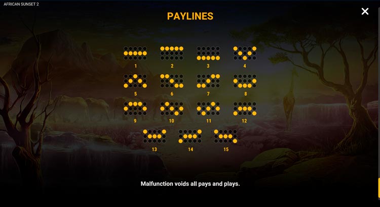 Таблица выплат African Sunset 2