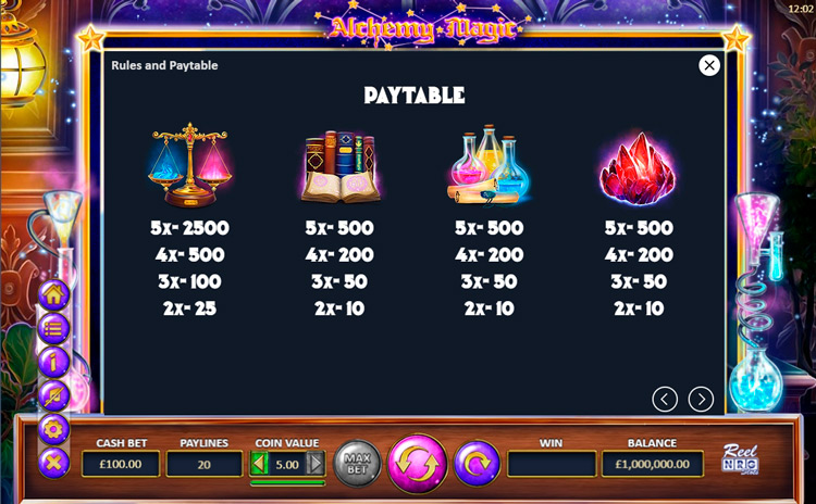 Таблица выплат Alchemy Magic