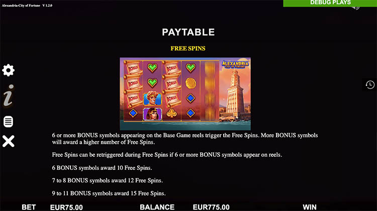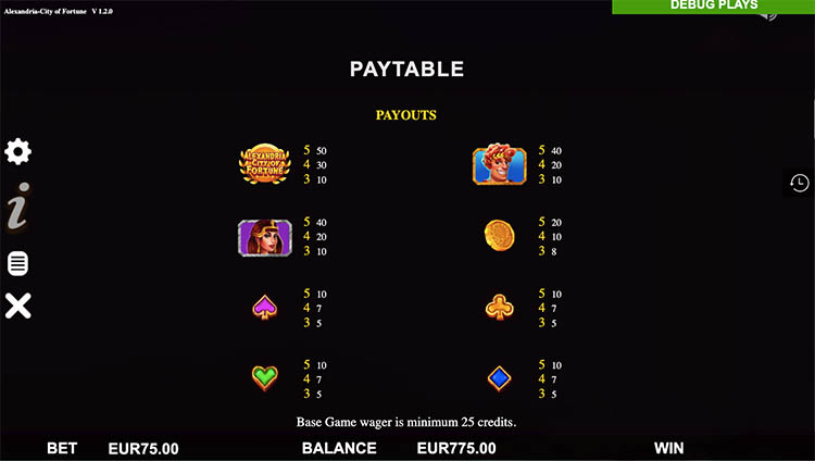 Таблица выплат Alexandria City Of Fortune