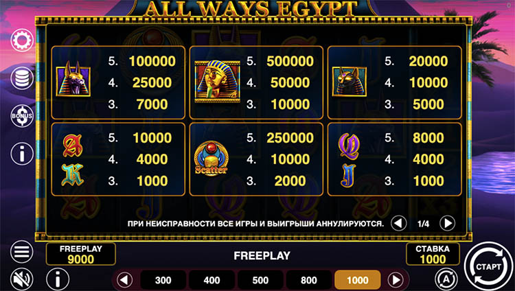 Таблица выплат All Ways Egypt
