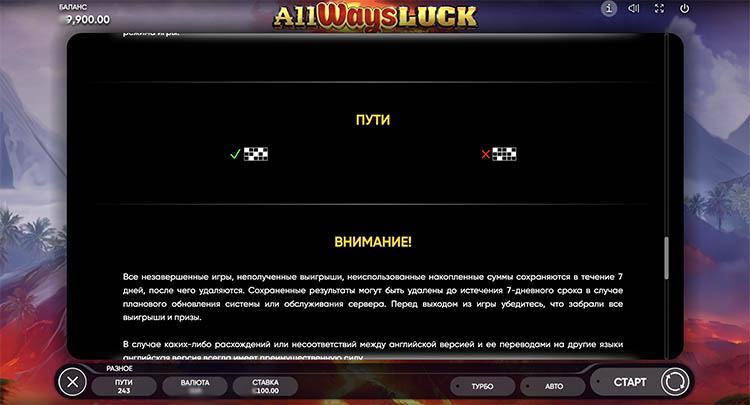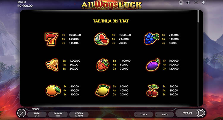 Таблица выплат All Ways Luck