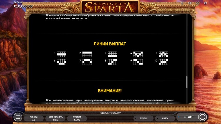 | Император Спарты | 0.5 | 10 | 50 | 500 |