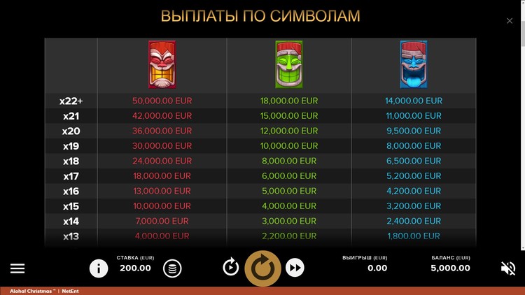 Таблица выплат Aloha! Christmas
