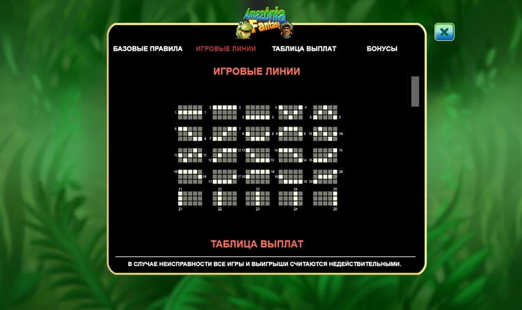 Таблица выплат Amazonia Fantasy