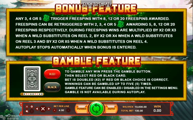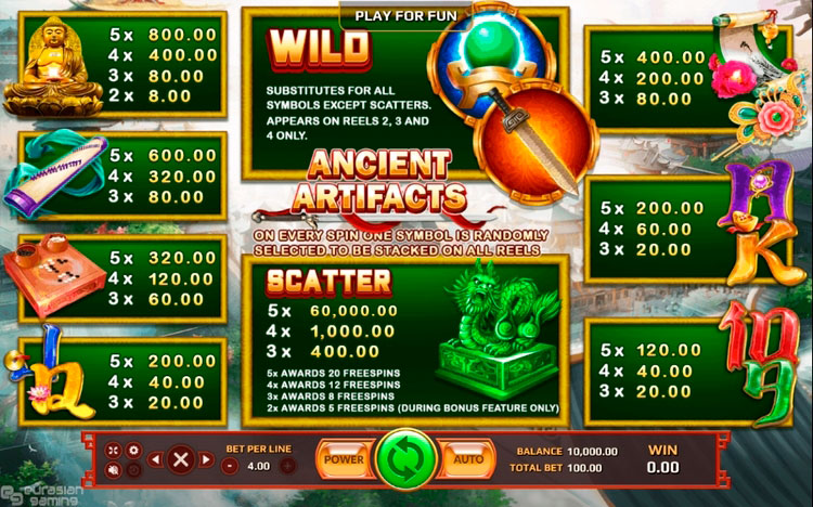 | Статуя дракона (Scatter) | - | 400 | 1 000 | 60 000 |