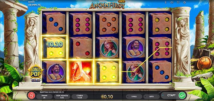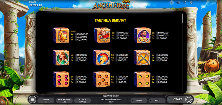 Таблица выплат Ancient Troy Dice