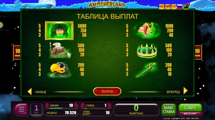 Таблица выплат Anotherland
