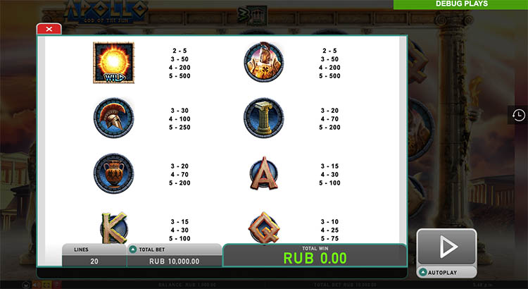| Воин, Солнце (Wild) | 5 | 50 | 200 | 500 |