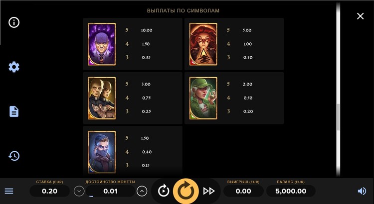 | Одержимый безумец | 0,35 | 1,5 | 10 |