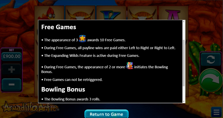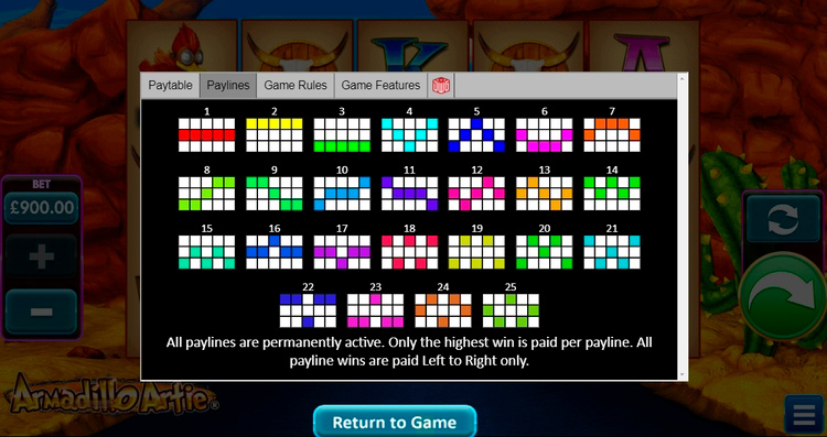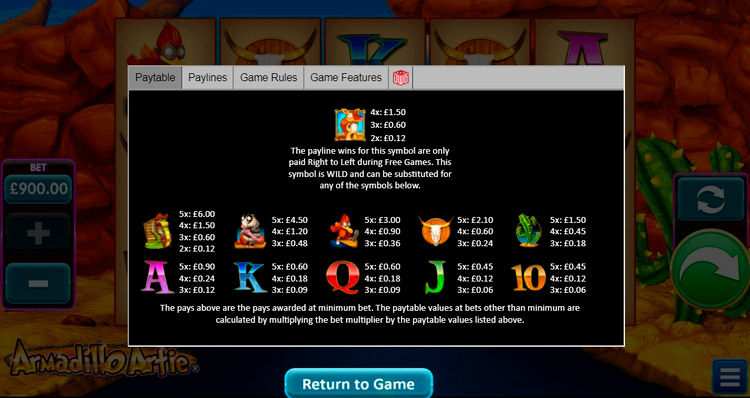 Таблица выплат Armadillo Artie