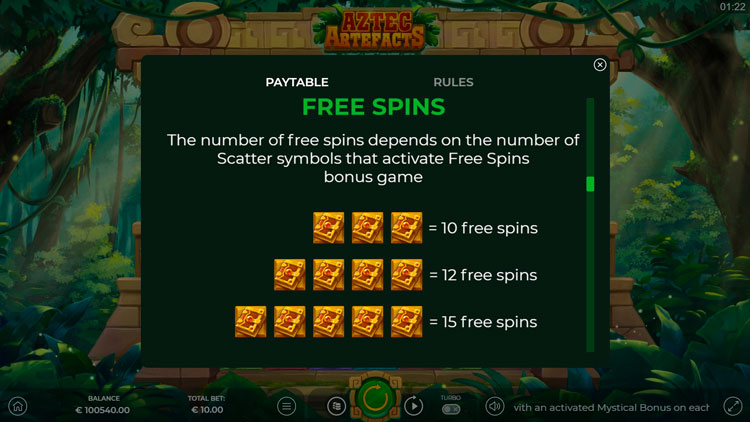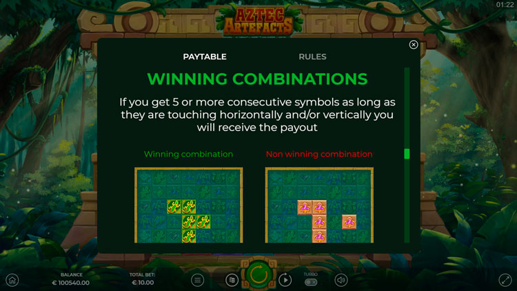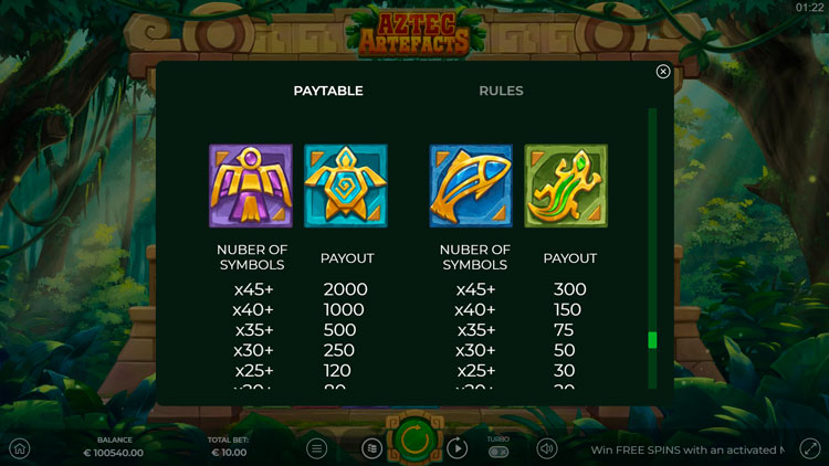 Таблица выплат Aztec Artefacts