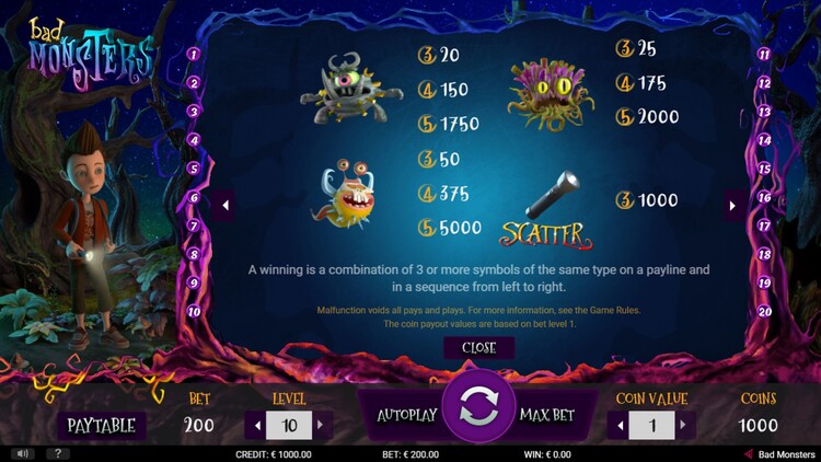 Таблица выплат Bad Monsters