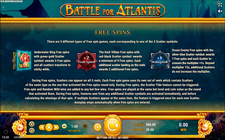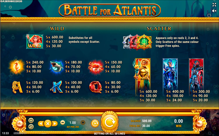 | Подводный король (Scatter) | 30 | 120 | 600 |