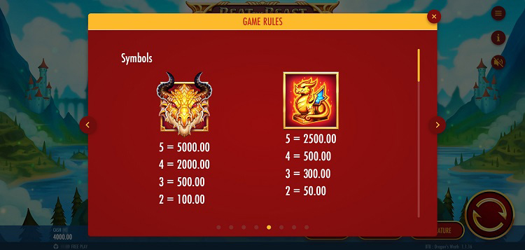 Таблица выплат Beat the Beast Dragon’s Wrath