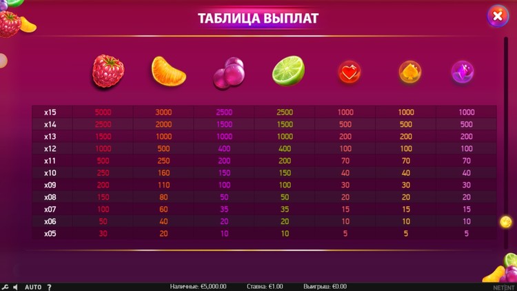 Таблица выплат Berryburst
