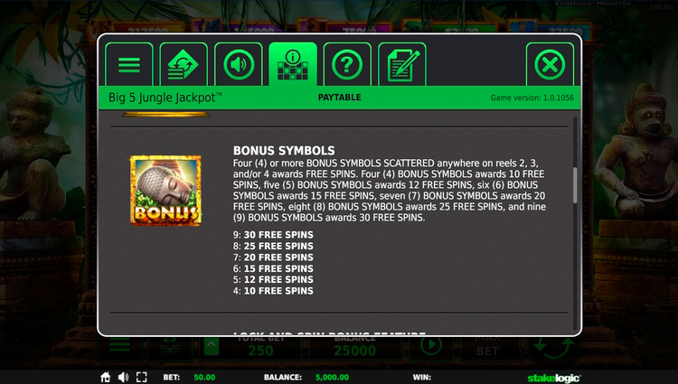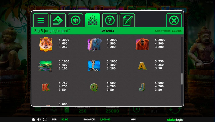 Таблица выплат Big 5 Jungle Jackpot