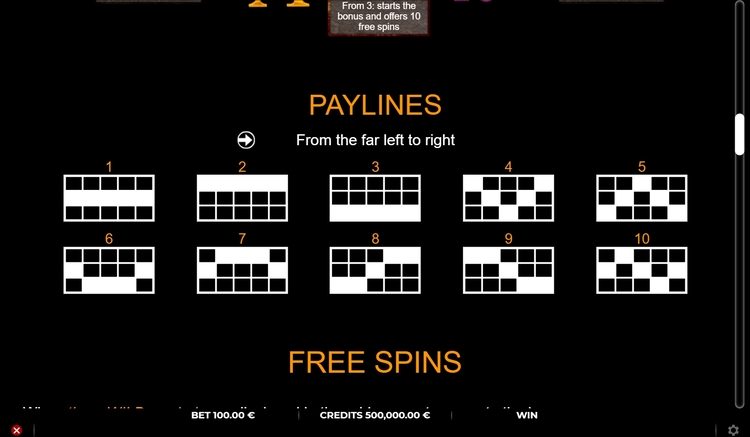 | 10, J, Q | - | 50 | 250 | 1 000 |