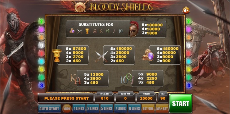 Таблица выплат Bloody Shields