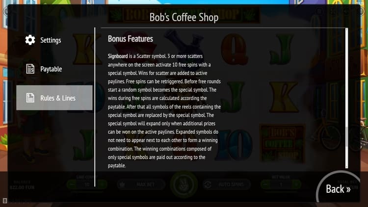 Таблица выплат Bob’s Coffee Shop