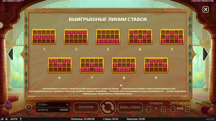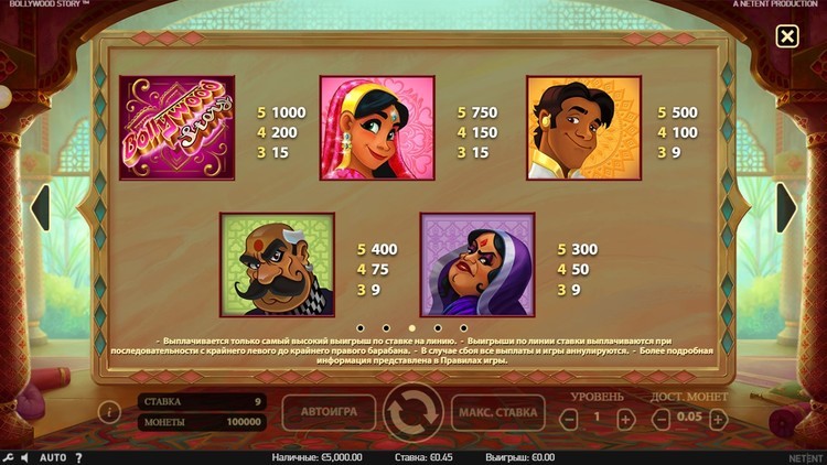 Таблица выплат Bollywood Story