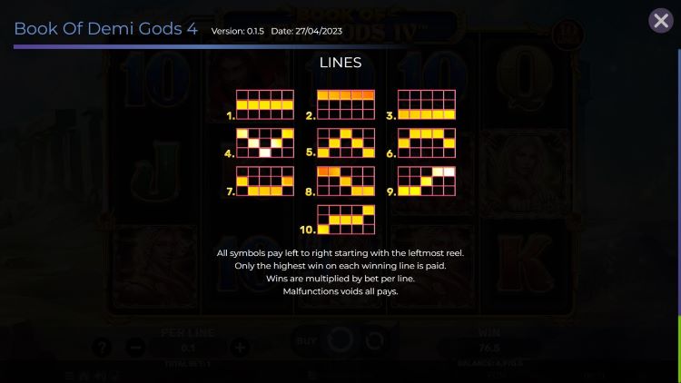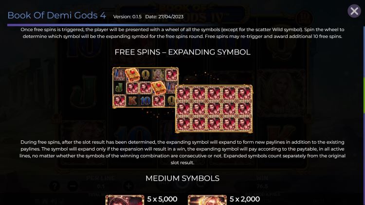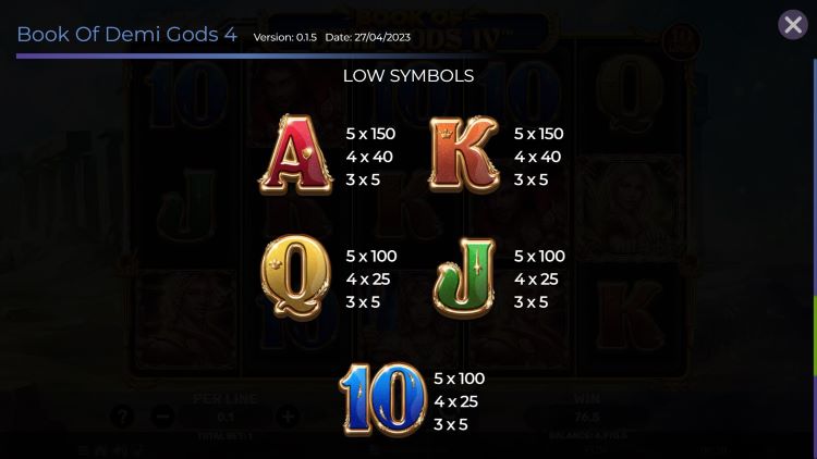 Таблица выплат Book Of Demi Gods IV – The Golden Era