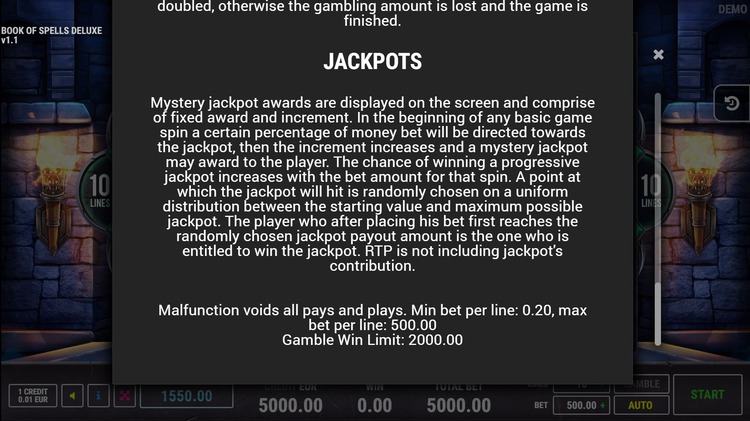 Таблица выплат Book Of Spells Deluxe