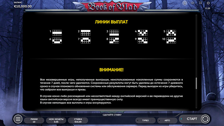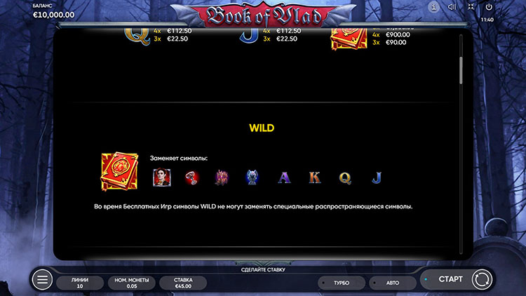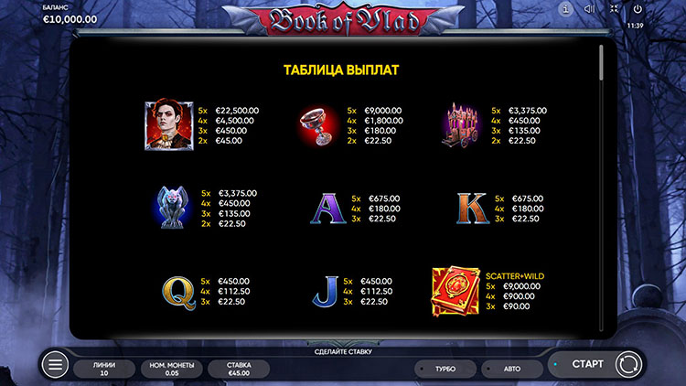 Таблица выплат Book of Vlad
