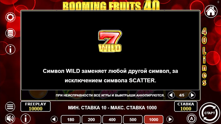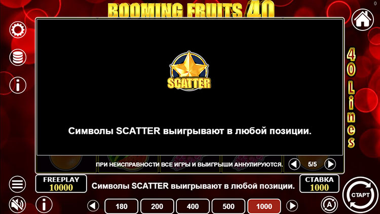 Таблица выплат Booming Fruits 40