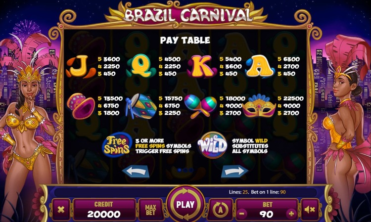 Таблица выплат Brazil Carnival