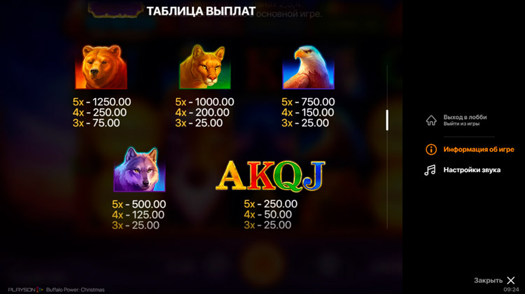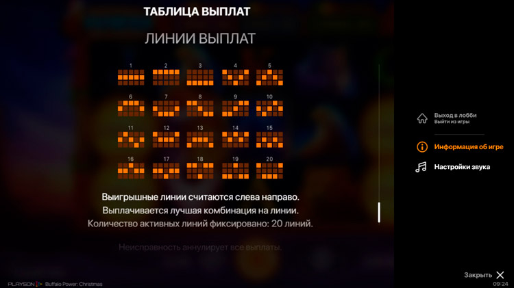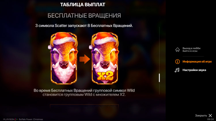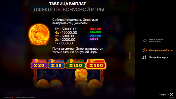Таблица выплат Buffalo Power: Christmas