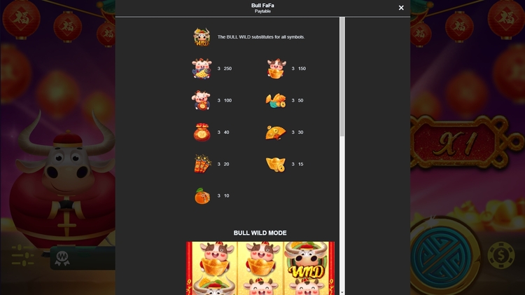 Таблица выплат Bull Bull Fa
