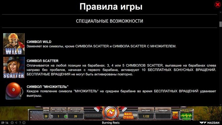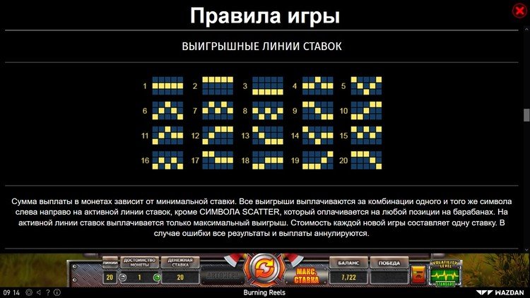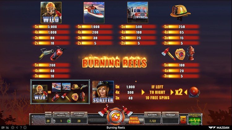 Таблица выплат Burning Reels