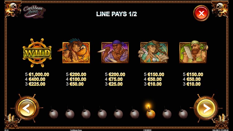 Таблица выплат Caribbean Anne