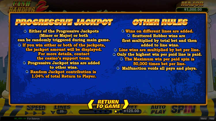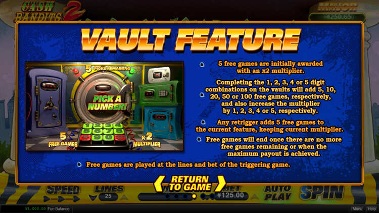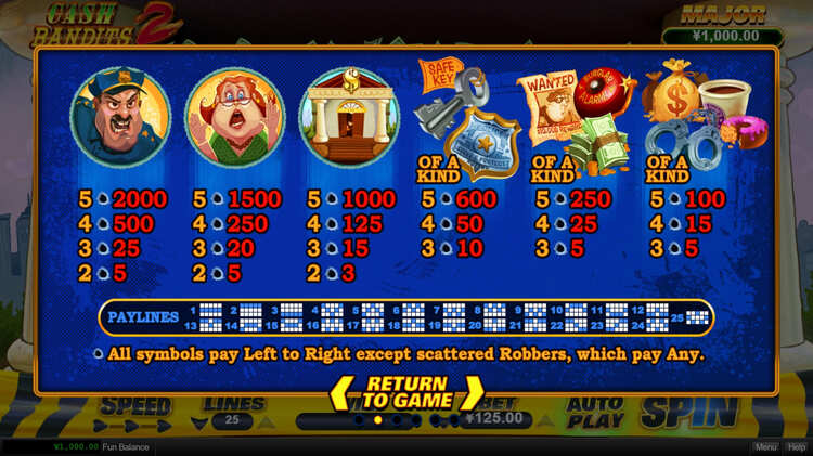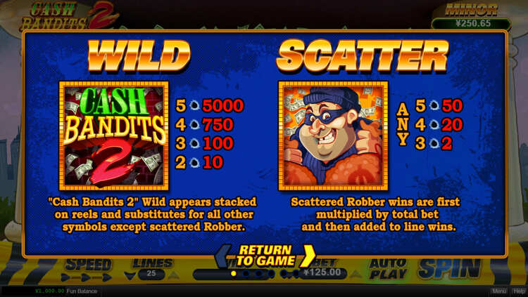 Таблица выплат Cash Bandits 2