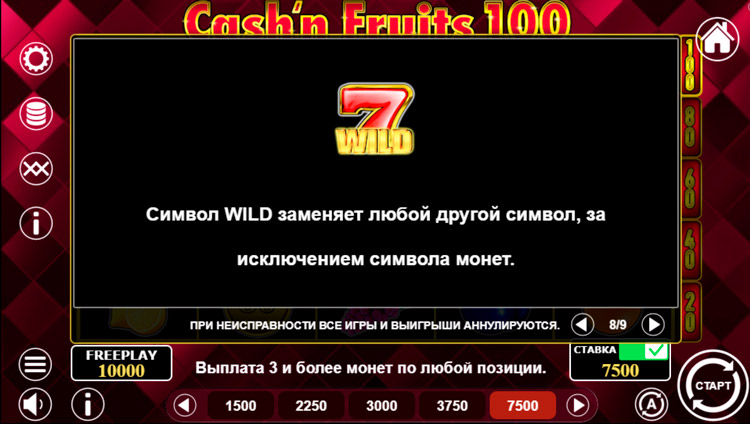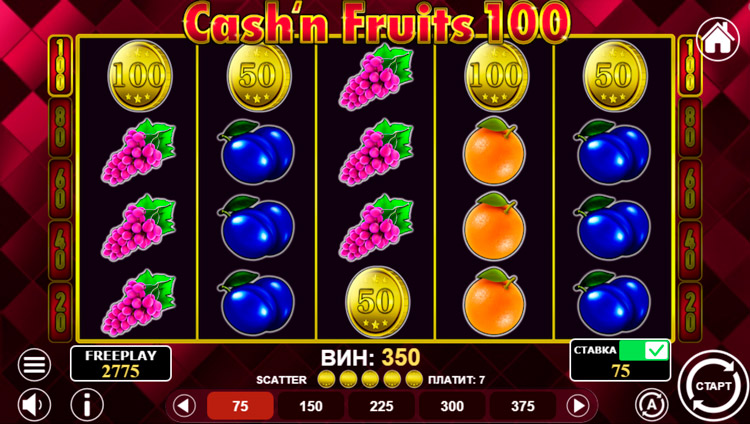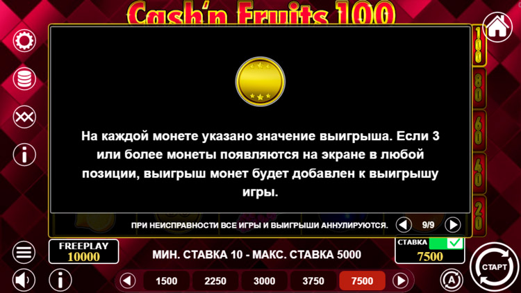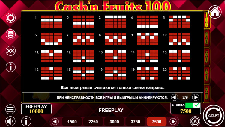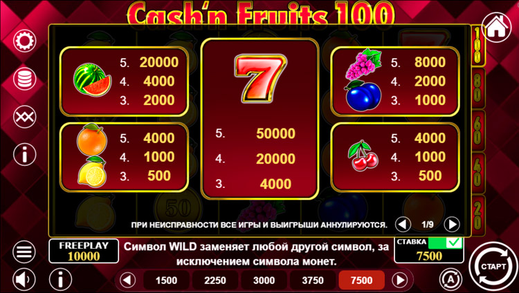 Таблица выплат Cash & Fruits 100