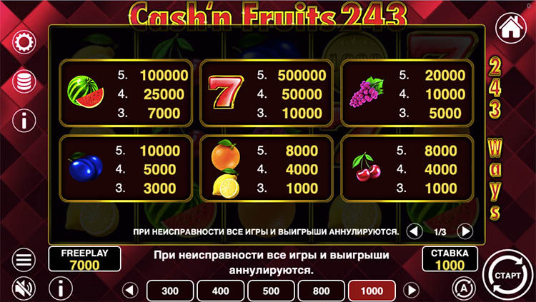 | Семерка | 10 000 | 50 000 | 500 000 |