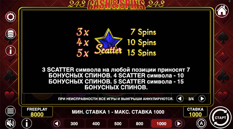 | Звезда (Scatter) | 2000 | 10 000 | 250 000 |