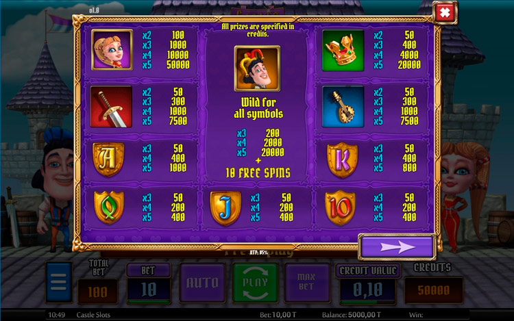Таблица выплат Castle 5R