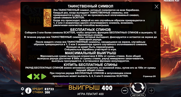 Таблица выплат Castle of Fire