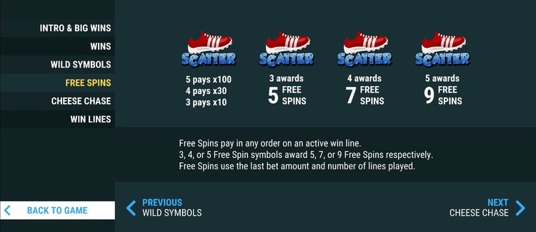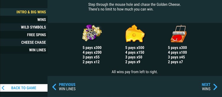 Таблица выплат Cheese Chase