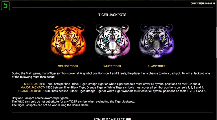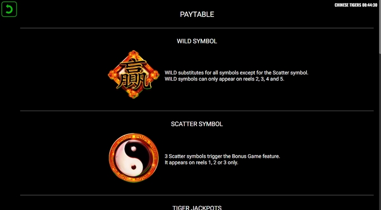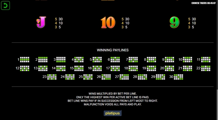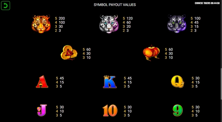 Таблица выплат Chinese Tigers