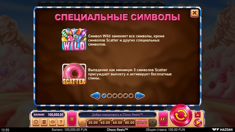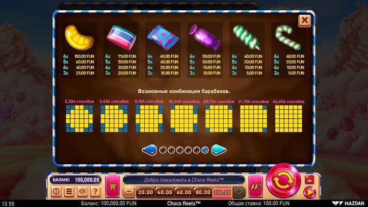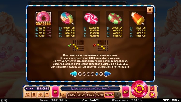 Таблица выплат Choco Reels
