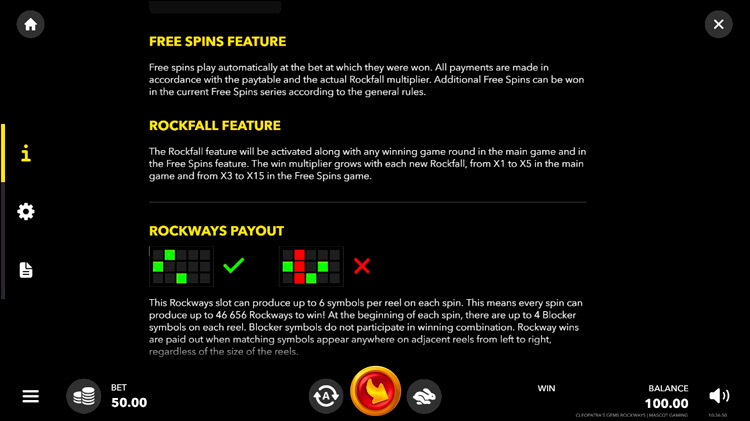 Таблица выплат Cleopatras Gems Rockways